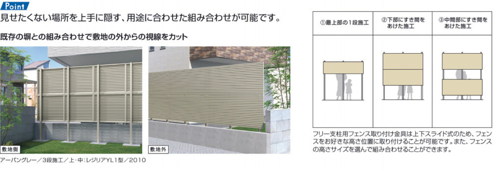 この他、足元から目線の高さまで目隠ししてくれる、多段フェンスも